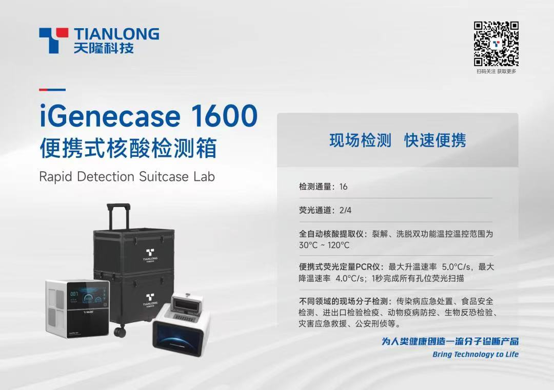 iGenecase 1600便攜式核酸檢測(cè)箱是天隆科技專為小型實(shí)驗(yàn)室和現(xiàn)場(chǎng)檢測(cè)等場(chǎng)景量身打造,一個(gè)組合式拉桿箱就能將整個(gè)核酸檢測(cè)實(shí)驗(yàn)室收納進(jìn)去。