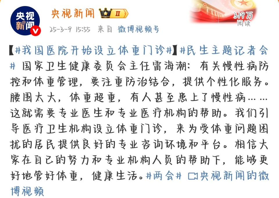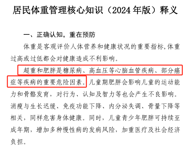 衛(wèi)健委發(fā)布的《居民體重管理核心知識(shí)(2024版)》也指出,體重異常是糖尿病、心腦血管疾病甚至癌癥的“導(dǎo)火索”。而兩會(huì)中多次提到的“體重管理年”,正是通過“政府-行業(yè)-單位-個(gè)人”四方聯(lián)動(dòng),在全社會(huì)建立支持性環(huán)境,普及健康生活方式,最終實(shí)現(xiàn)慢性病防治的“關(guān)口前移”。