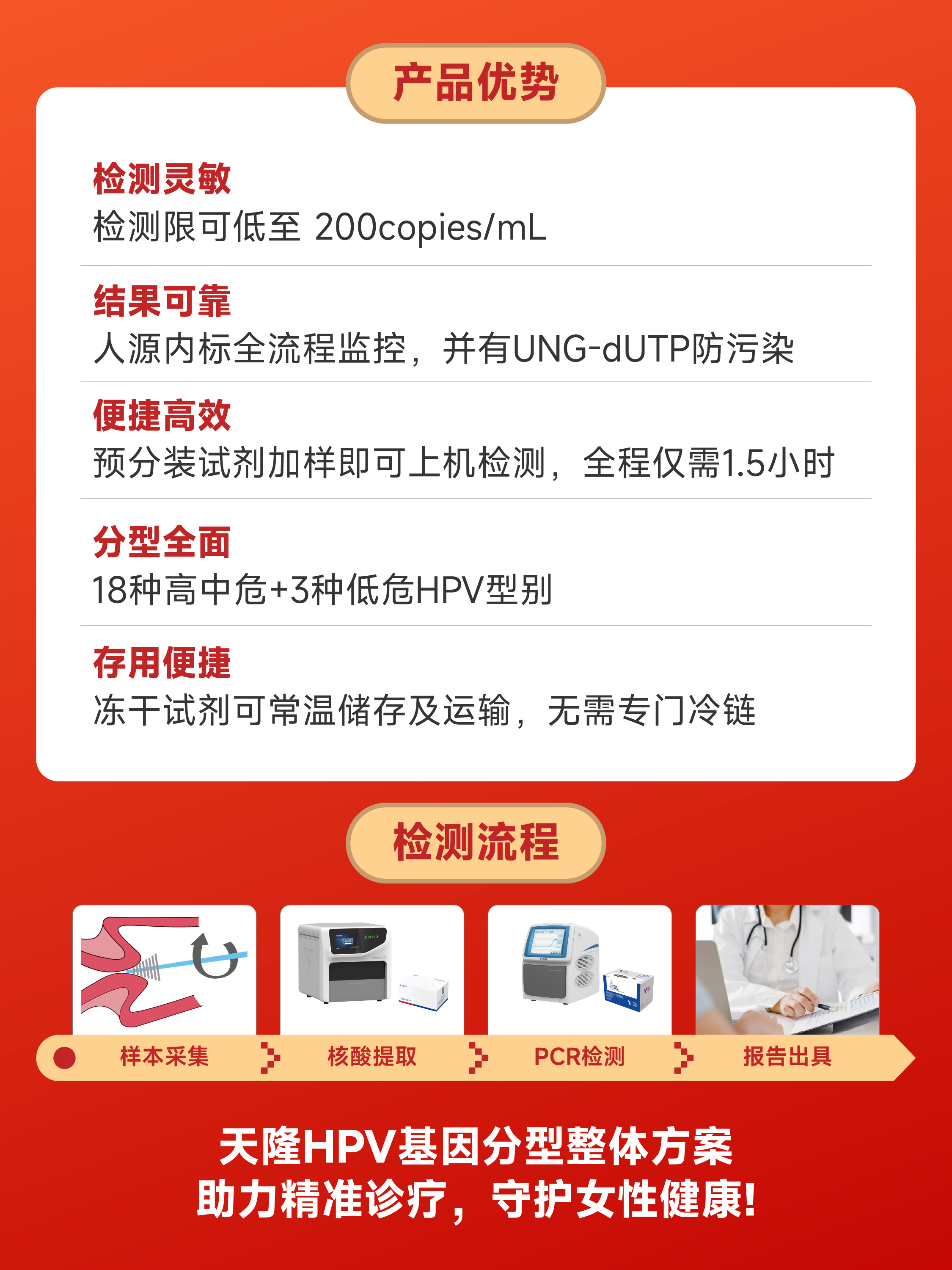 該產(chǎn)品檢測高效、靈敏度高、結(jié)果可靠、操作便捷,能為HPV相關(guān)疾病的輔助診斷提供重要依據(jù),助力早期精準診療,守護女性健康。