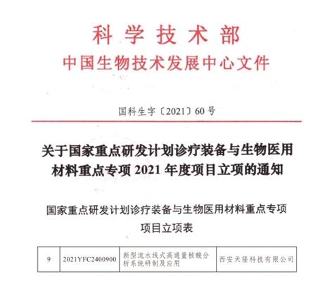 當(dāng)前,天隆科技身處全新的政策環(huán)境和行業(yè)趨勢(shì)中,分子診斷技術(shù)快速變革、發(fā)展模式不斷翻新,企業(yè)如何實(shí)現(xiàn)可持續(xù)發(fā)展?以需求為導(dǎo)向守正創(chuàng)新是天隆科技對(duì)發(fā)展之問的作答。多年來(lái),天隆科技累計(jì)承擔(dān)各級(jí)科研項(xiàng)目100余項(xiàng),其中先后主持或牽頭國(guó)家級(jí)和?。ú浚┘?jí)重點(diǎn)計(jì)劃數(shù)十項(xiàng),包括國(guó)家重點(diǎn)研發(fā)計(jì)劃、國(guó)家重大科學(xué)儀器設(shè)備開發(fā)專項(xiàng)、國(guó)家傳染病防治重大專項(xiàng)等。2022年,再次牽頭科技部“十四五”重點(diǎn)研發(fā)計(jì)劃“新型流水線式高通量核酸分析系統(tǒng)研制及應(yīng)用”,以診療裝備和生物醫(yī)用材料重大戰(zhàn)略性產(chǎn)品為重點(diǎn),將為突發(fā)傳染病監(jiān)測(cè)和大規(guī)模人群篩查、遺傳病診斷、個(gè)性化用藥、腫瘤診療、動(dòng)物疫病檢疫等提供更加有力、高效、智能的科技支撐。